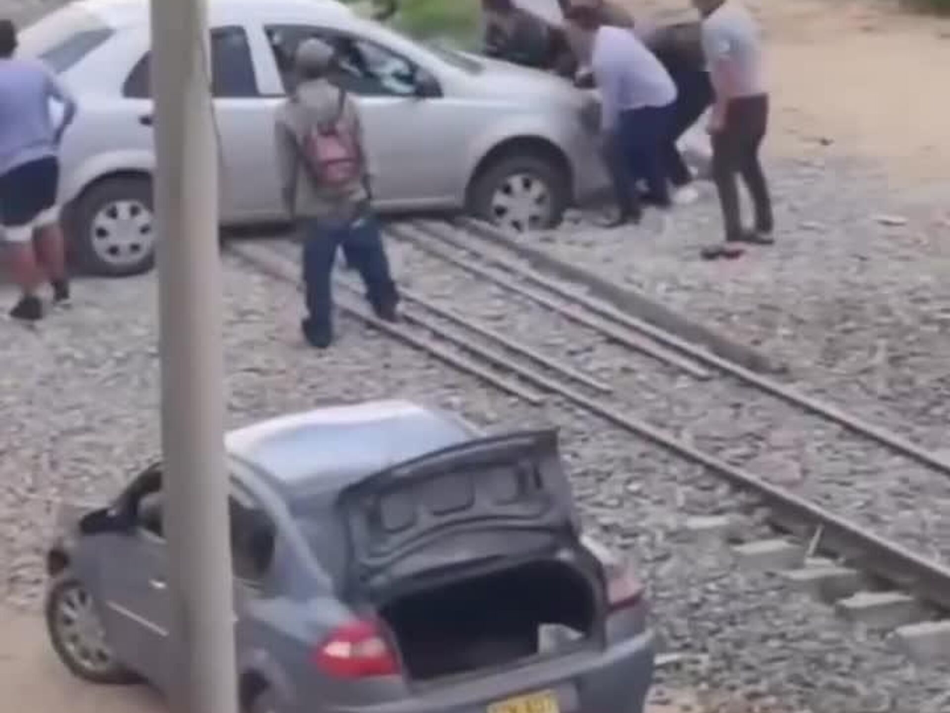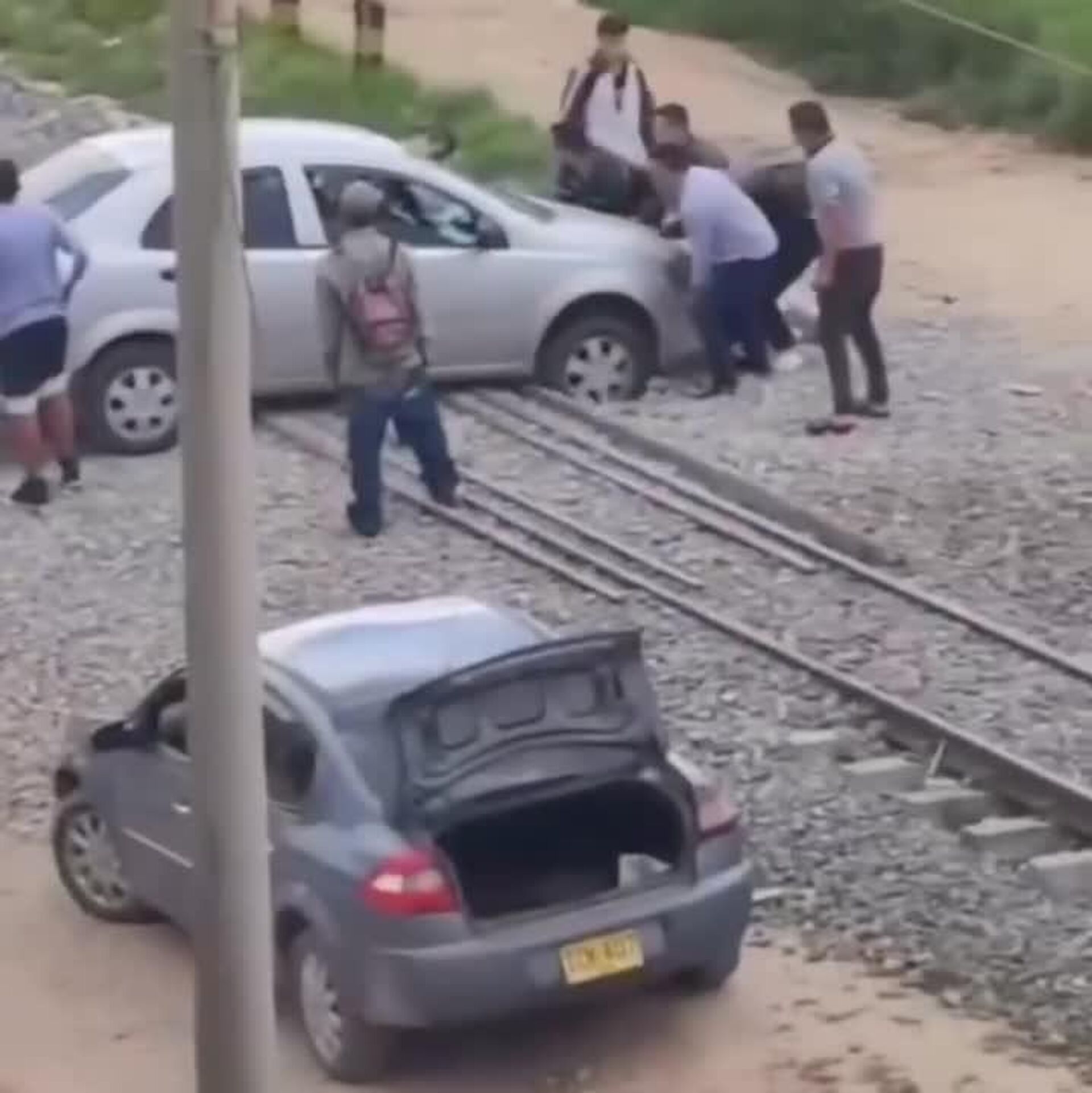 En un cruce férreo de Duitama, en Colombia, un vehículo particular quedó atascado sobre los rieles justo cuando el tren se aproximaba. La tensión fue total, pero la reacción inmediata de la comunidad fue clave. Entre varios ciudadanos unieron fuerzas para empujar el vehículo y sacarlo de la zona de riesgo apenas segundos antes del paso de la locomotora de carga.