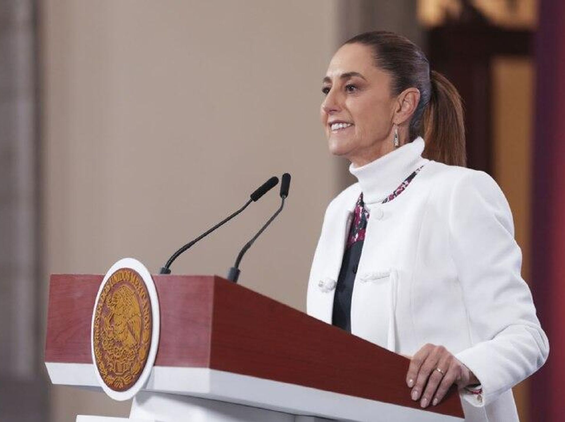 La primera mandataria comentó que la víspera, en la reunión que sostuvo en Palacio Nacional para abordar este tema, le planteó a "los partidos que me llevaron al gobierno —Morena, PT y el Verde— que consideren la propuesta" que, aseguró, "reconoce la diversidad política" de México y "no busca el partido de Estado".