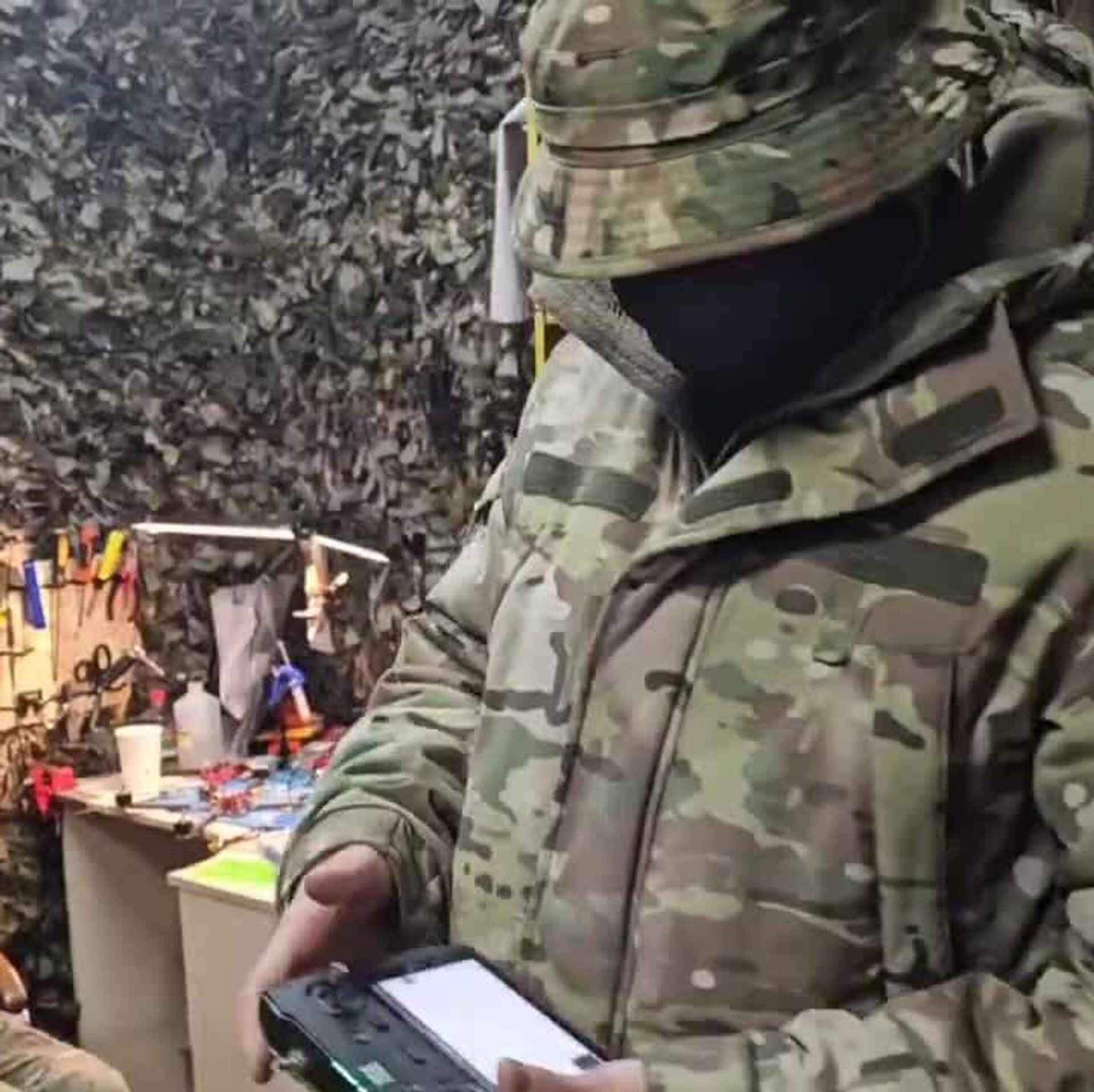 Los operadores de drones rusos muestran su trabajo desde un punto de control