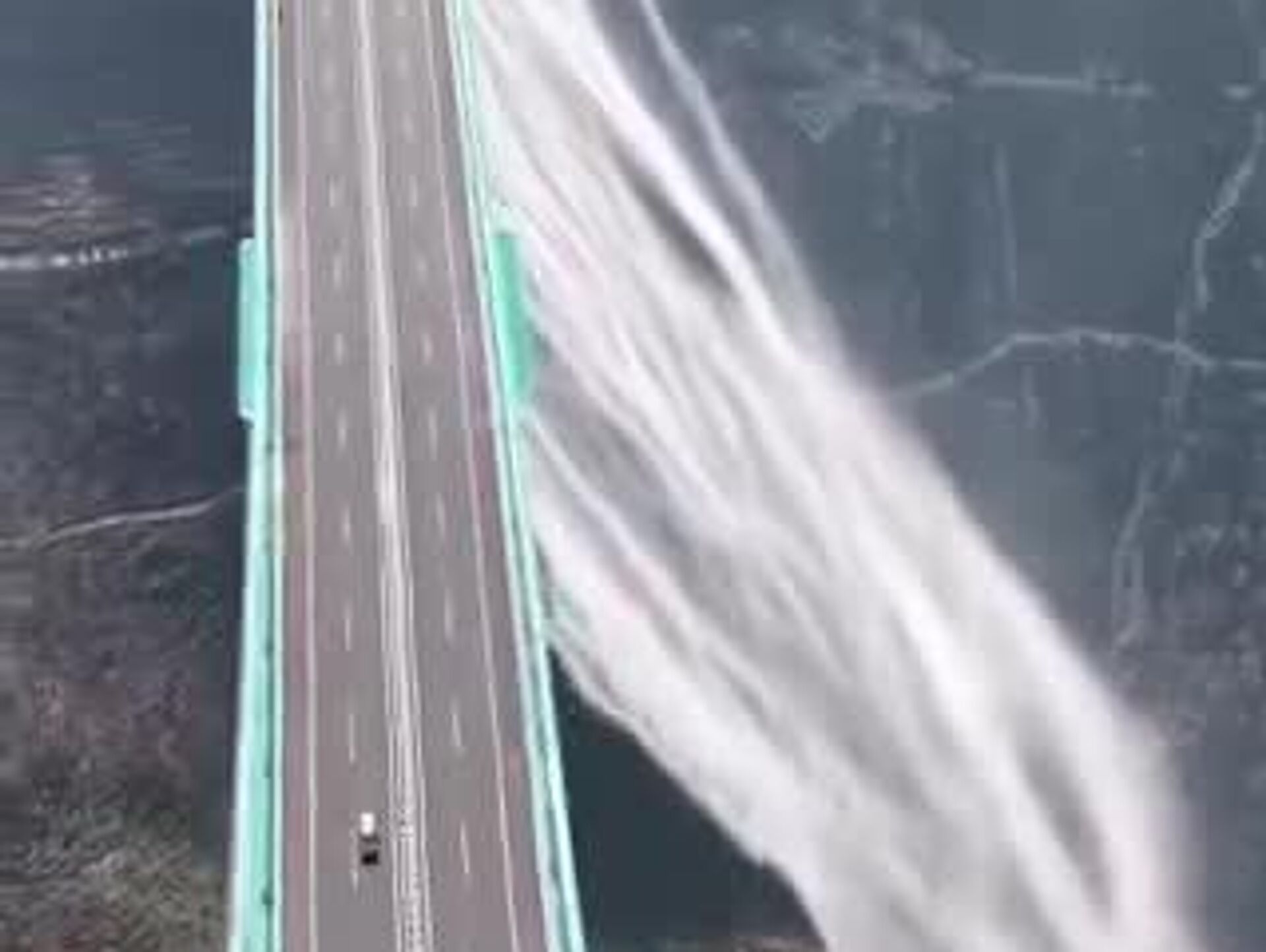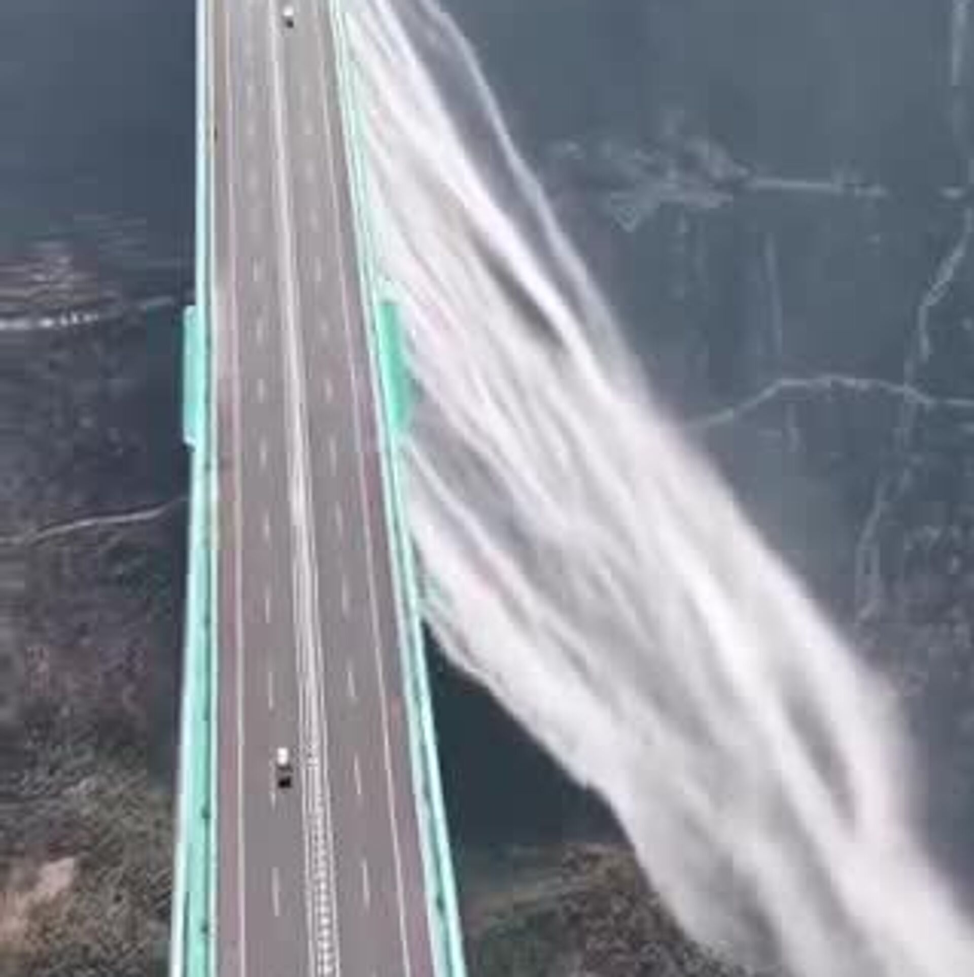 El fenómeno, captado en video y difundido en redes sociales, ha generado asombro internacional al combinar la majestuosidad natural con la ingeniería moderna, convirtiendo al puente en un escenario único donde la infraestructura y el paisaje se fusionan en un espectáculo visual de gran impacto.