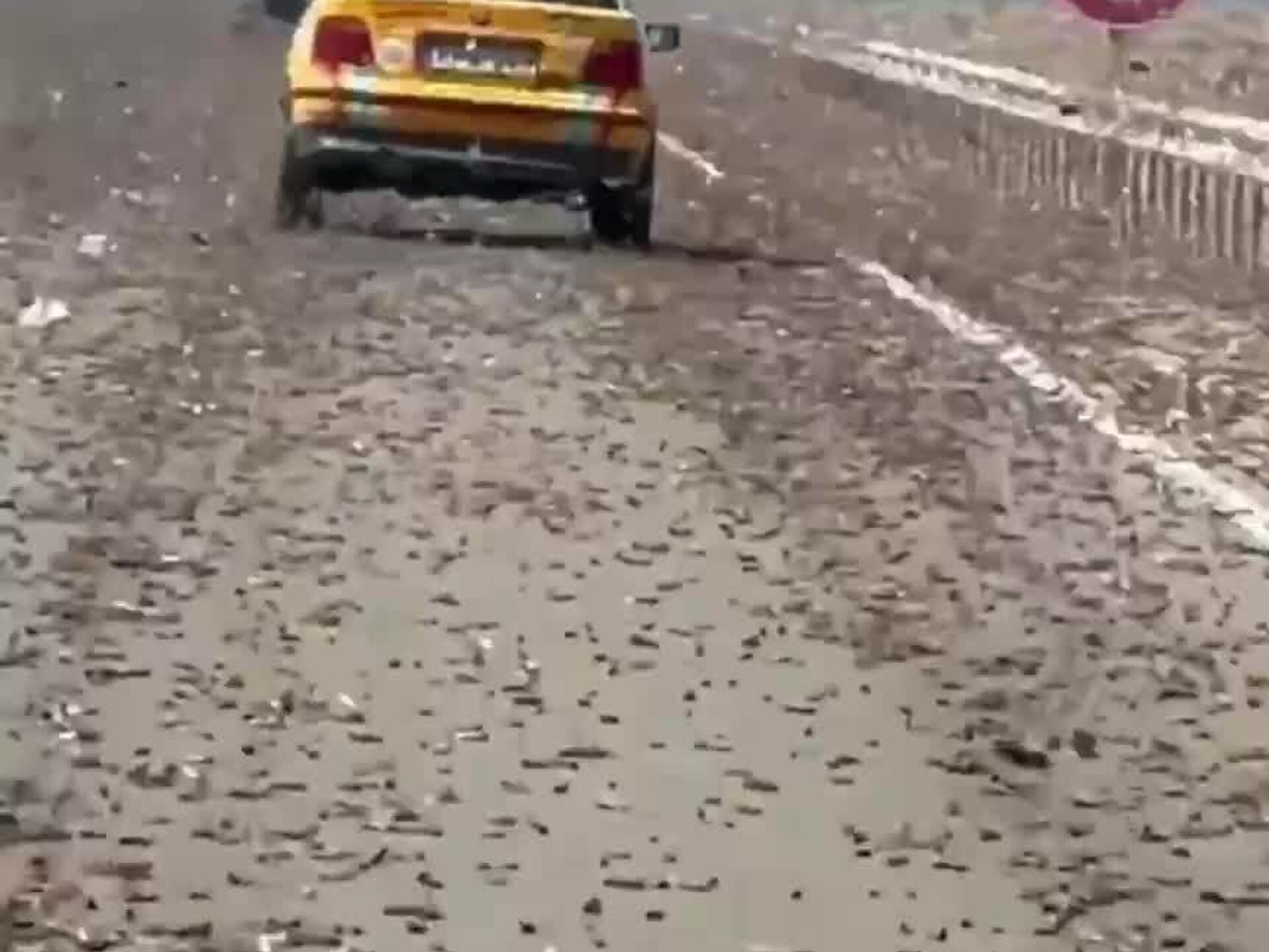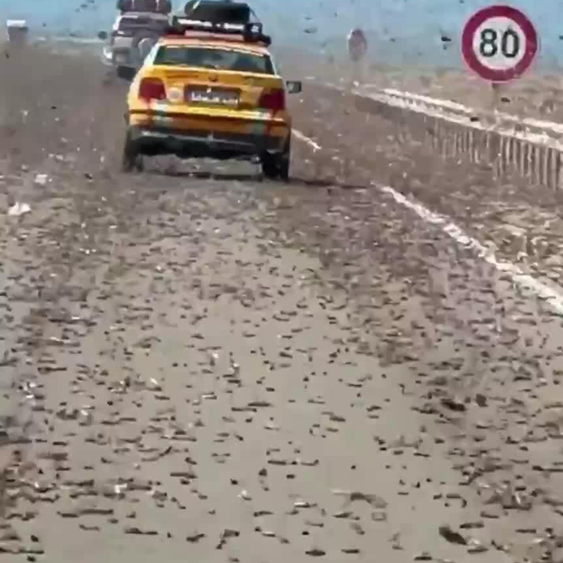 El enorme enjambre de insectos en migración llegó a cubrir una autopista e impactó contra los automóviles en la ciudad de Cabo Bojador, en el Sáhara Occidental.