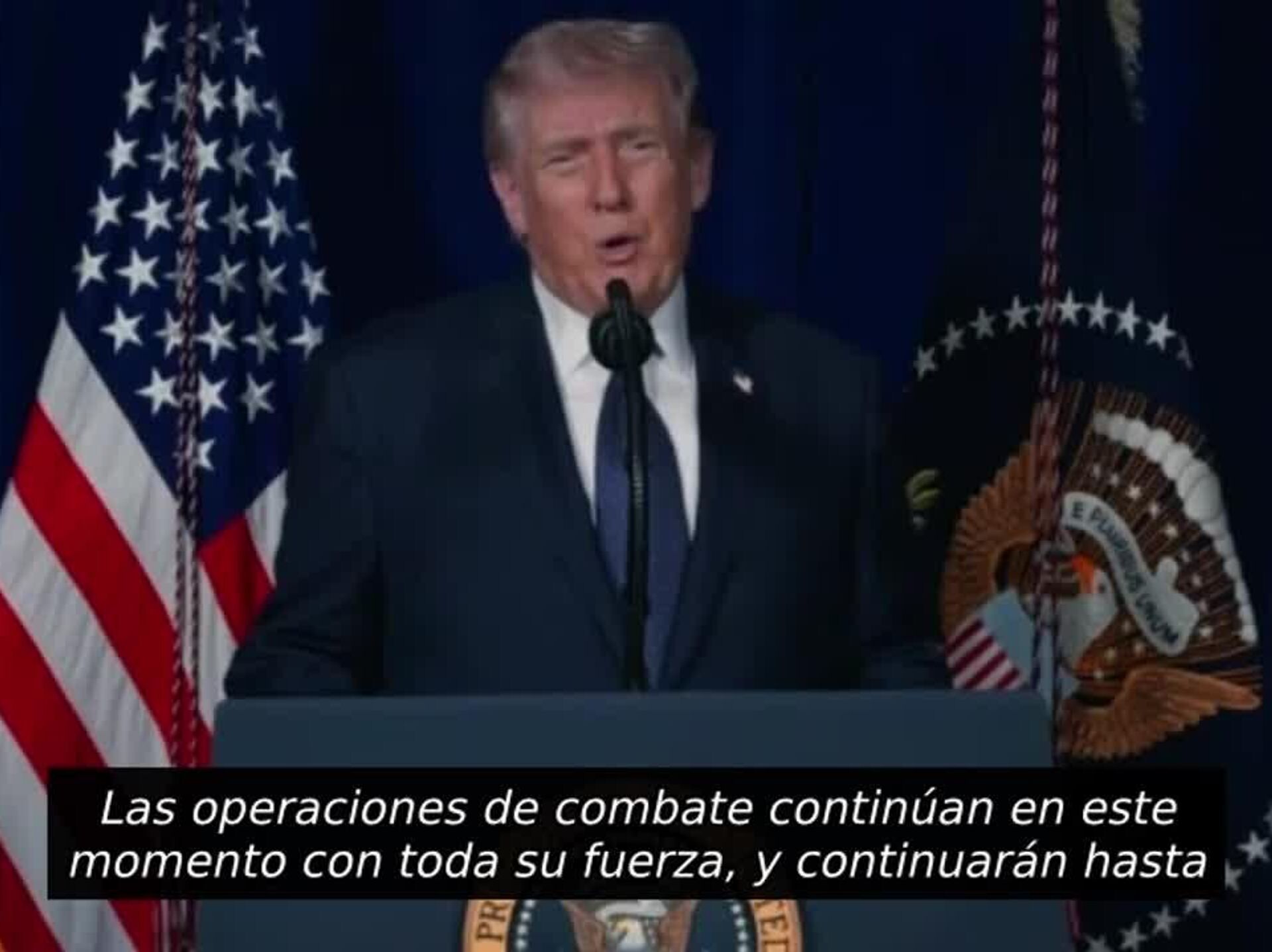 "Las operaciones de combate continúan con toda su fuerza y continuarán hasta que se alcancen todos nuestros objetivos. Tenemos objetivos muy sólidos", declaró en un video publicado en Truth Social.