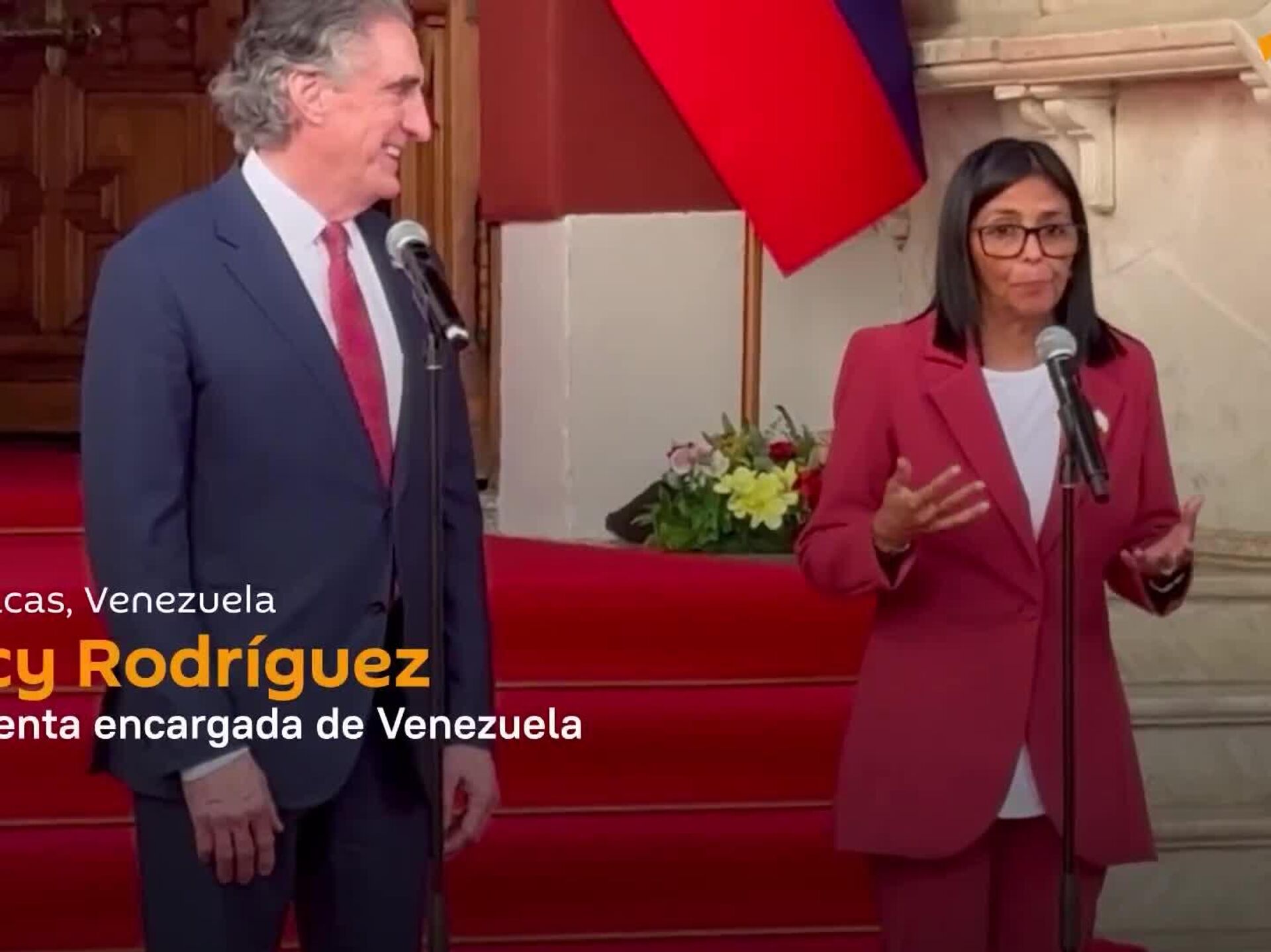 La presidenta encargada de Venezuela, Delcy Rodríguez, ofreció una conferencia de prensa conjunta con Doug Burgum, secretario de Interior de Estados Unidos, quien se encuentra de visita en la capital del país latinoamericano.