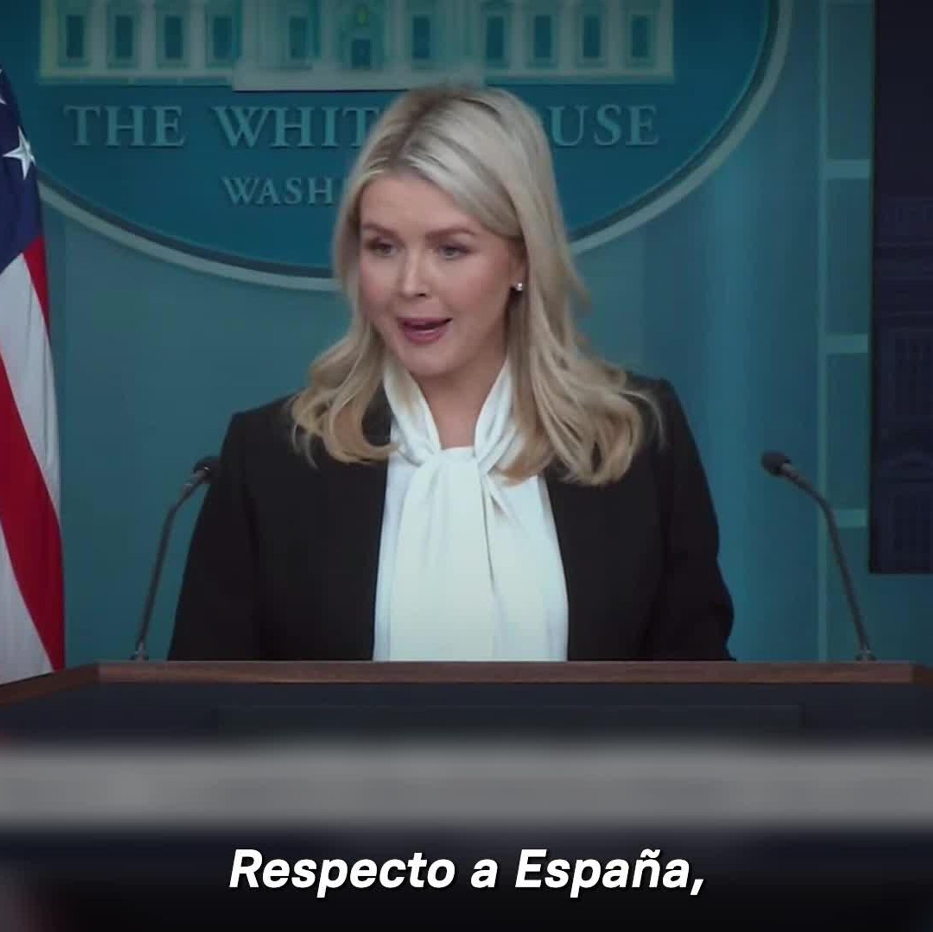 "Sé que las FFAA de EEUU están coordinándose con sus contrapartes en España. Pero el presidente [Trump] espera que todos nuestros aliados europeos, por supuesto, cooperen en esta misión largamente buscada, no solo por EEUU, sino también por Europa", dijo la portavoz.