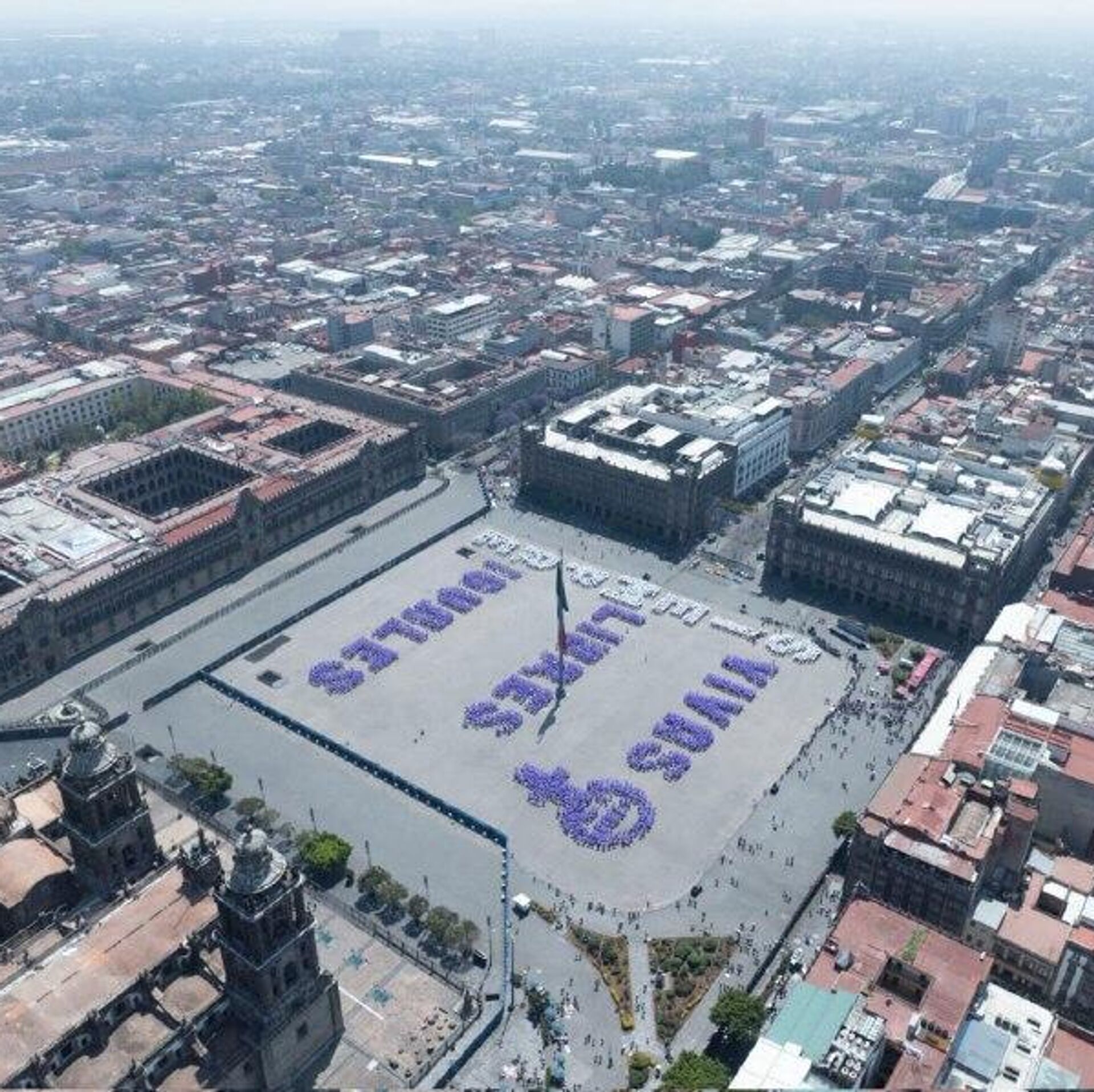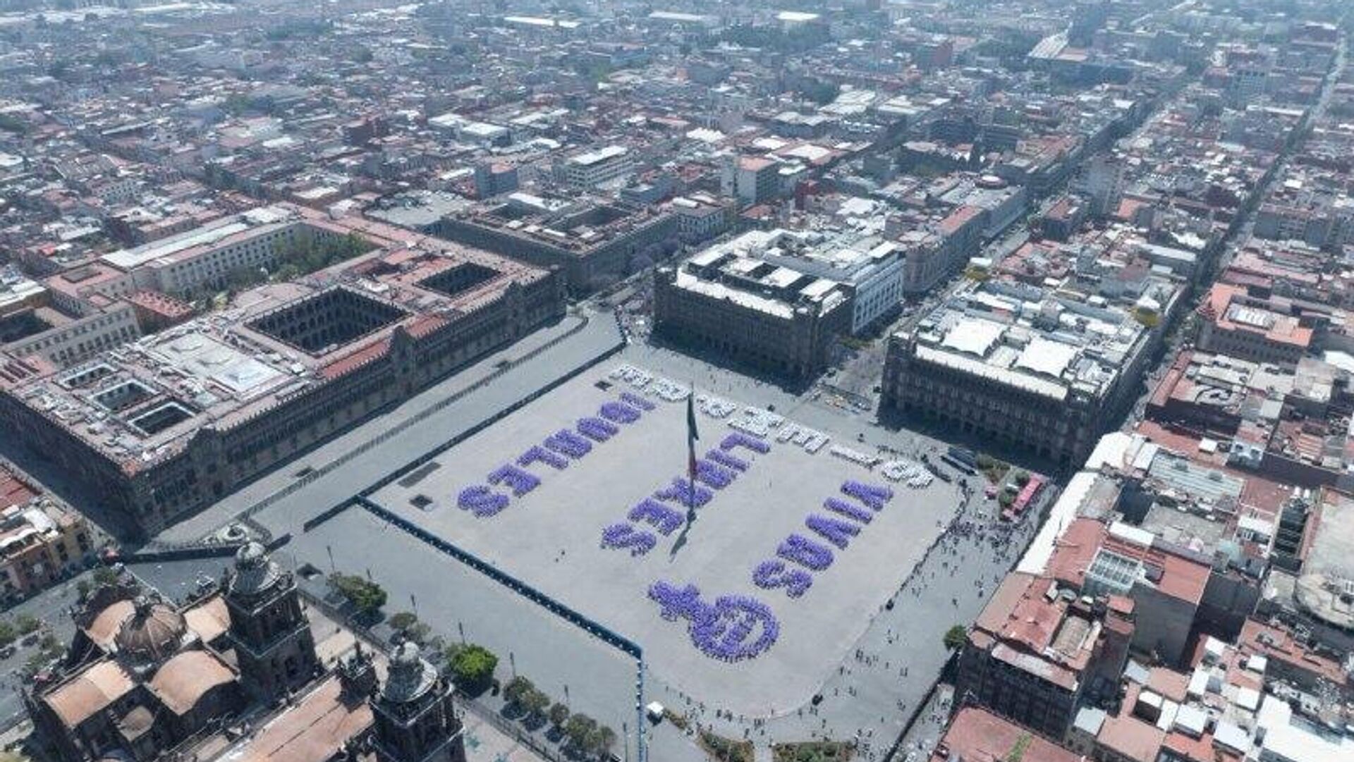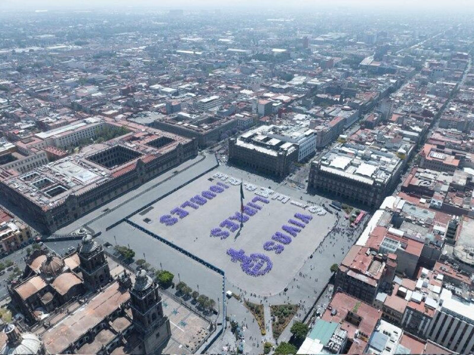 05:37 GMT 08.03.2026 (actualizado: 05:45 GMT 08.03.2026) Autoridades capitalinas coordinaron a cientos de mujeres en el Zócalo, la principal plaza pública del país latinoamericano, para que formaran la frase en el marco del Día Internacional de la Mujer que se conmemora este 8 de marzo.