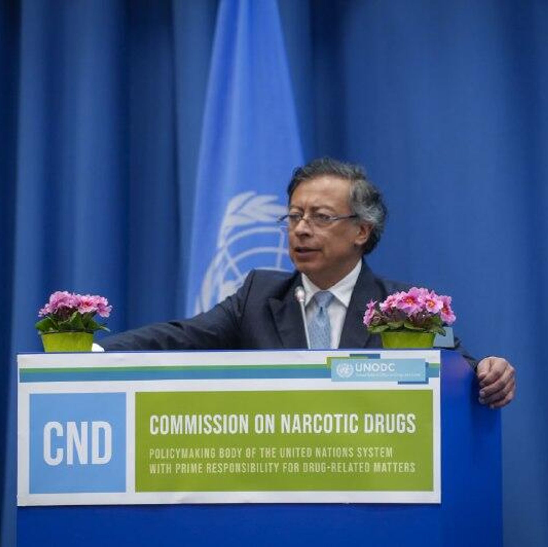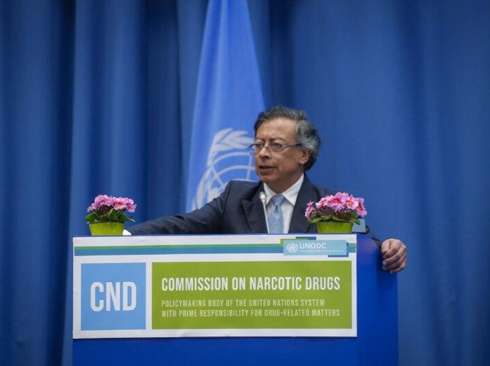 Tras participar en la reunión anual de la Comisión de Estupefacientes de la ONU en Viena, el presidente colombiano Gustavo Petro aseguró que "nosotros ponemos vidas en la lucha contra el narcotráfico" e hizo un recuento de las estadísticas: