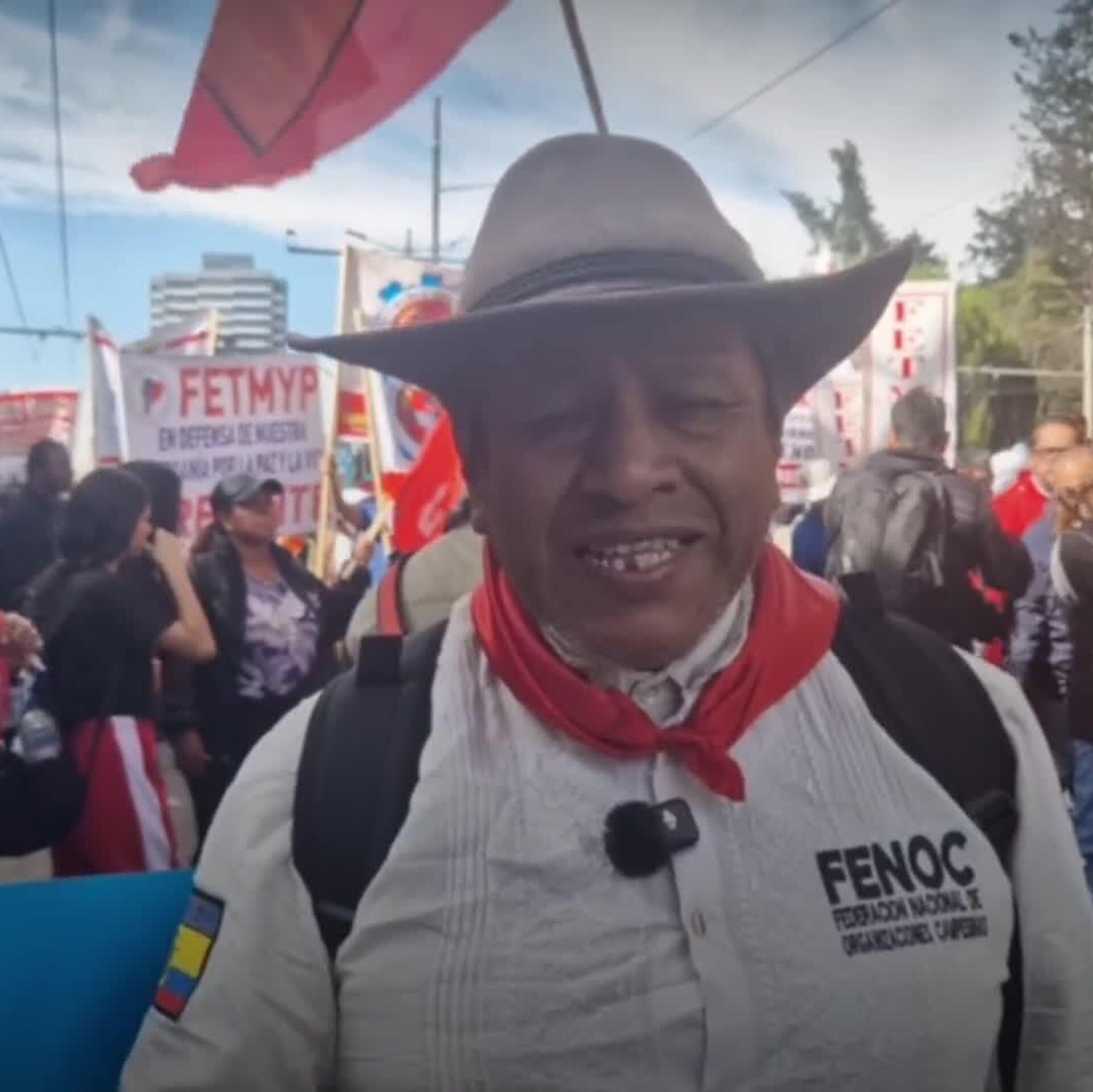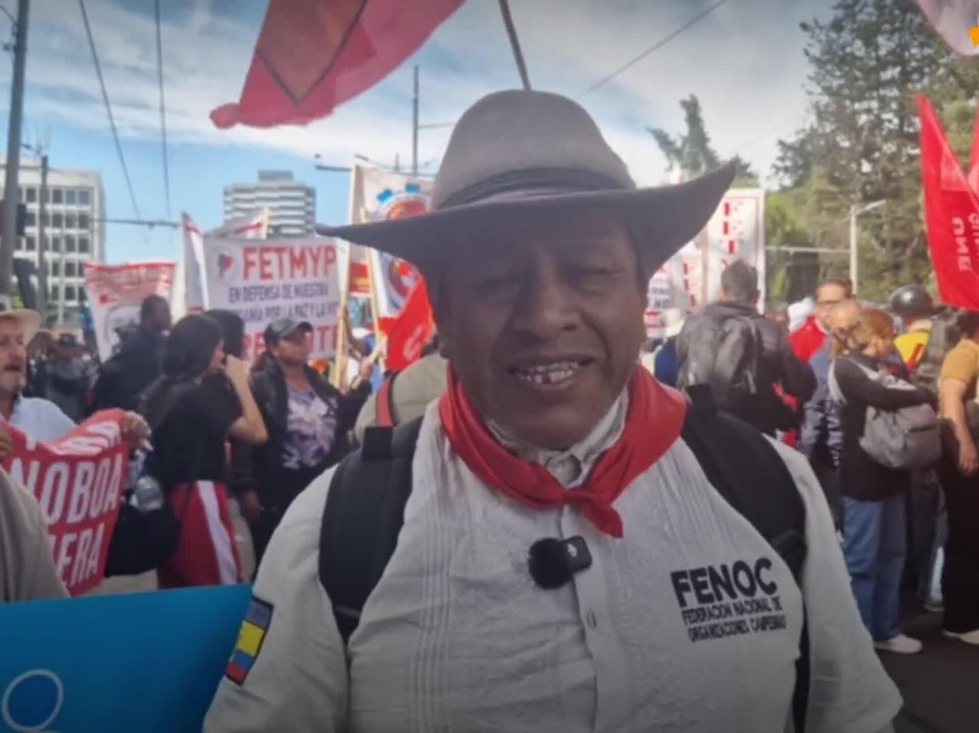 "Este presidente realmente está acabando con el Ecuador, no tenemos salud, no tenemos empleo y se va con todas las conquistas laborales que durante tanto tiempo se ha luchado con sangre. No es posible que vayamos a 10 horas de trabajo, con el mismo sueldo", comentó Marcelo Ushiña, presidente de la Federación Nacional de Organizaciones Campesinas de la nación latinoamericana.