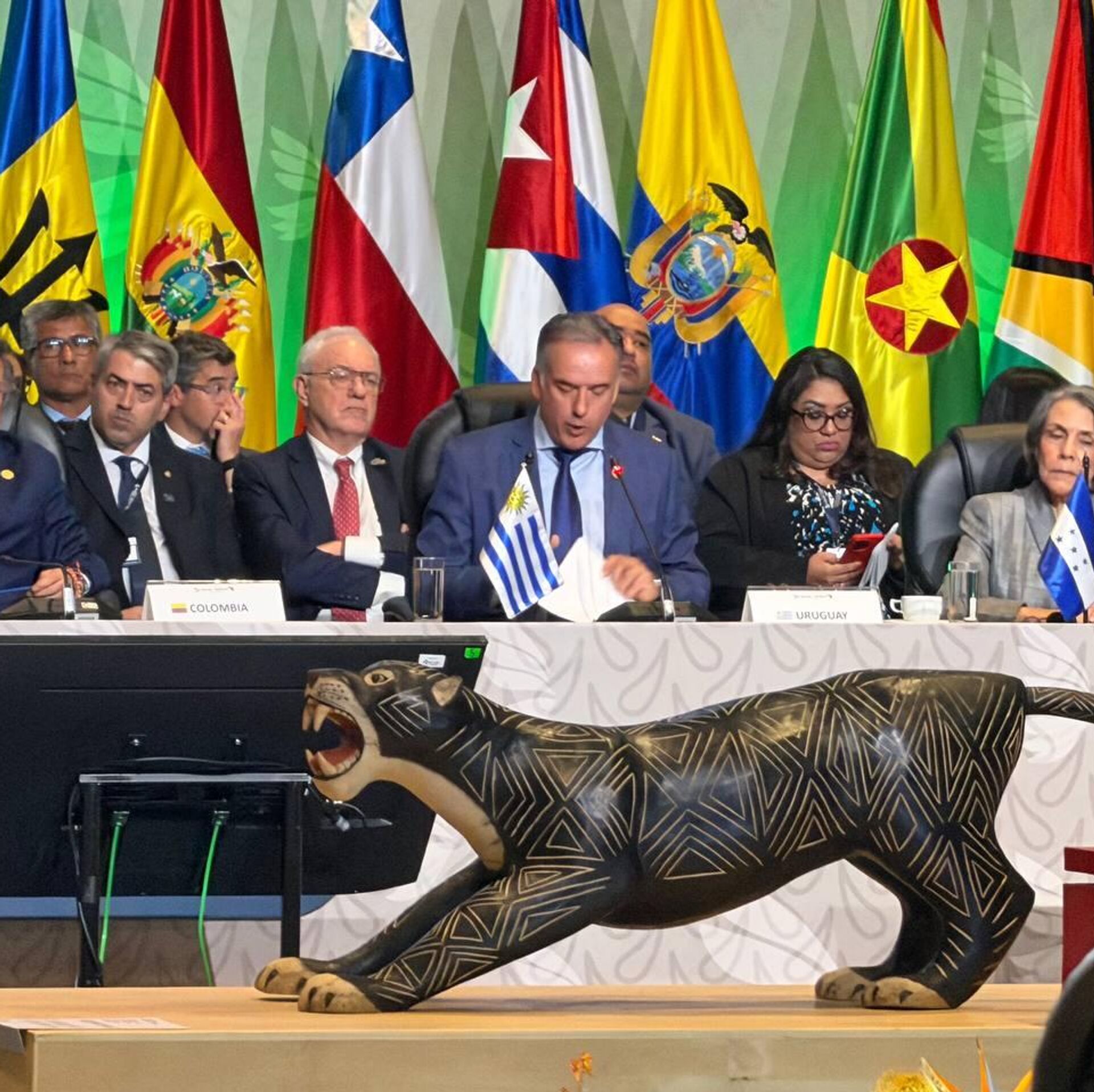 "Para nuestro país, ejercer esta presidencia es un honor, pero también es coherente con la convicción que forma parte de nuestra identidad como uruguayos. Nuestra Constitución establece el compromiso del país con la solución pacífica de las controversias internacionales, y con la integración de los Estados latinoamericanos", dijo durante su intervención.