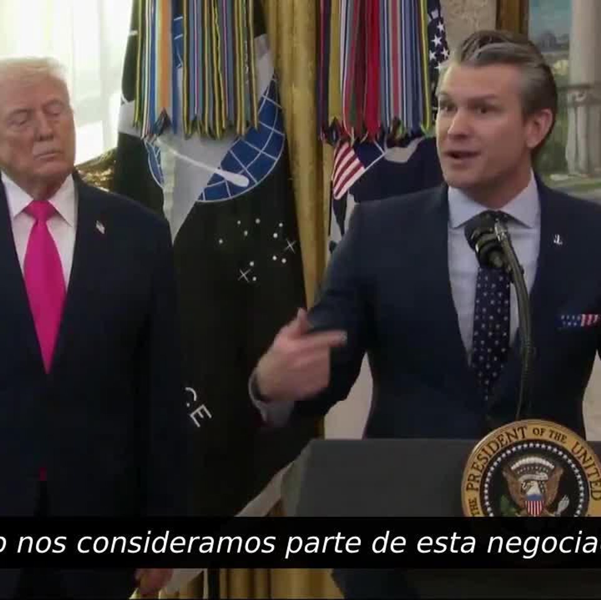 "La ofensiva aérea que hemos llevado a cabo, y que Israel ha llevado a cabo junto a nosotros, ha sido digna de pasar a los libros de historia", apuntó Hegseth. "Y por eso nos consideramos también parte de esta negociación... Nosotros negociamos con bombas".