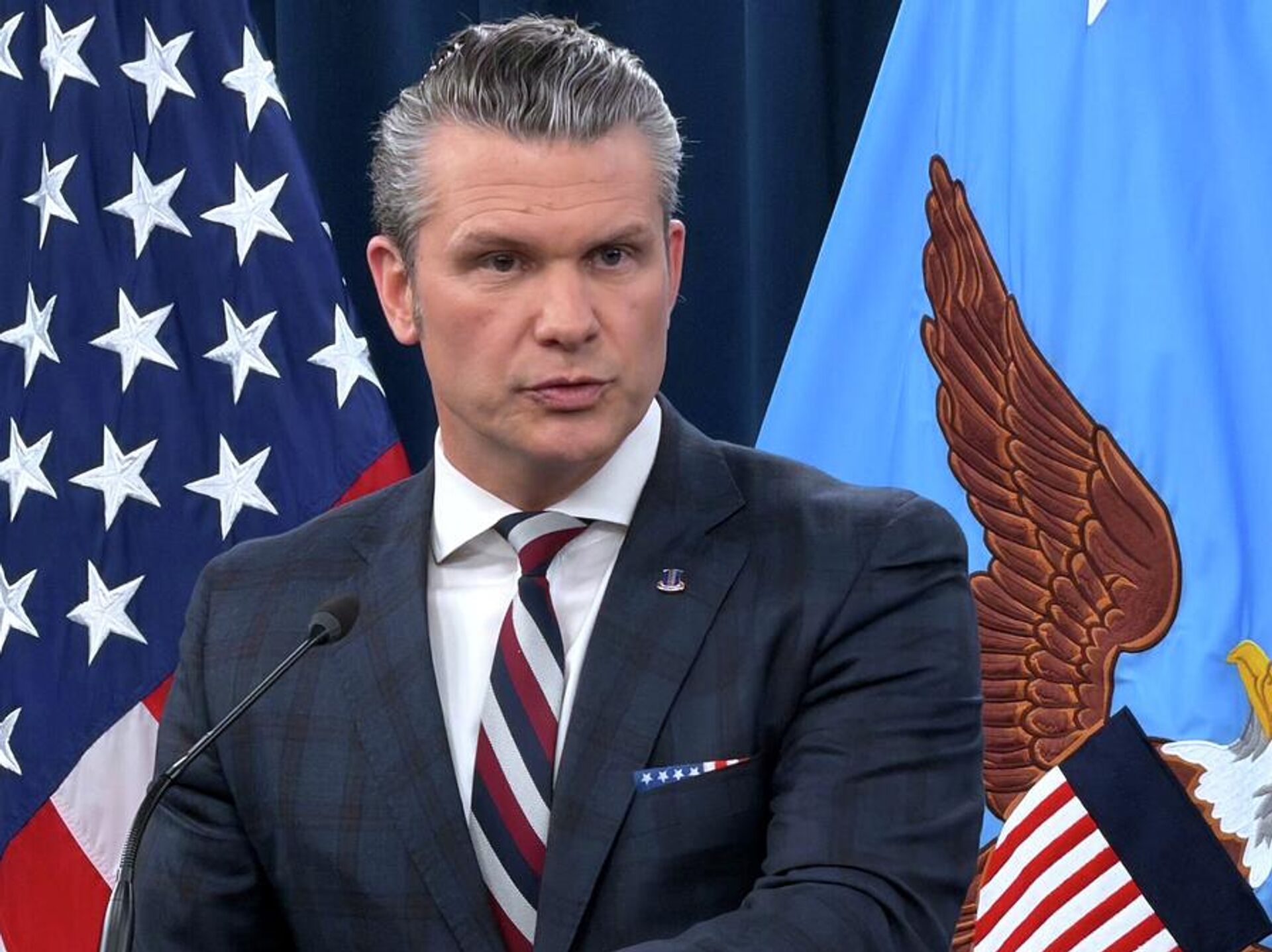 © AP Photo / Konstantin ToropinEl secretario de Guerra de EEUU, Pete Hegseth, habla durante una rueda de prensa en el Pentágono