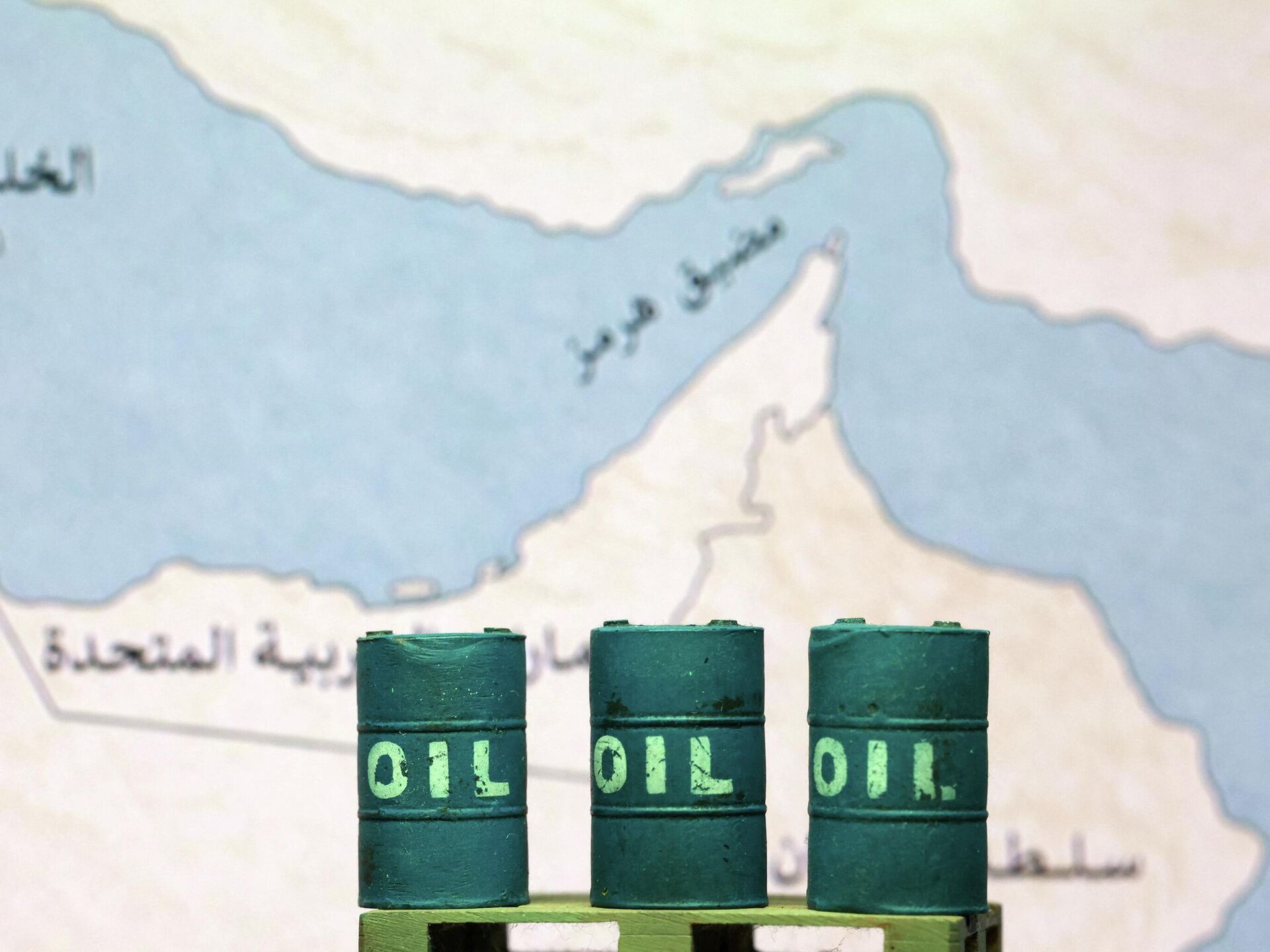 © REUTERS Dado RuvicUn mapa que muestra el estrecho de Ormuz y barriles de petróleo impresos (imagen ilustrativa)