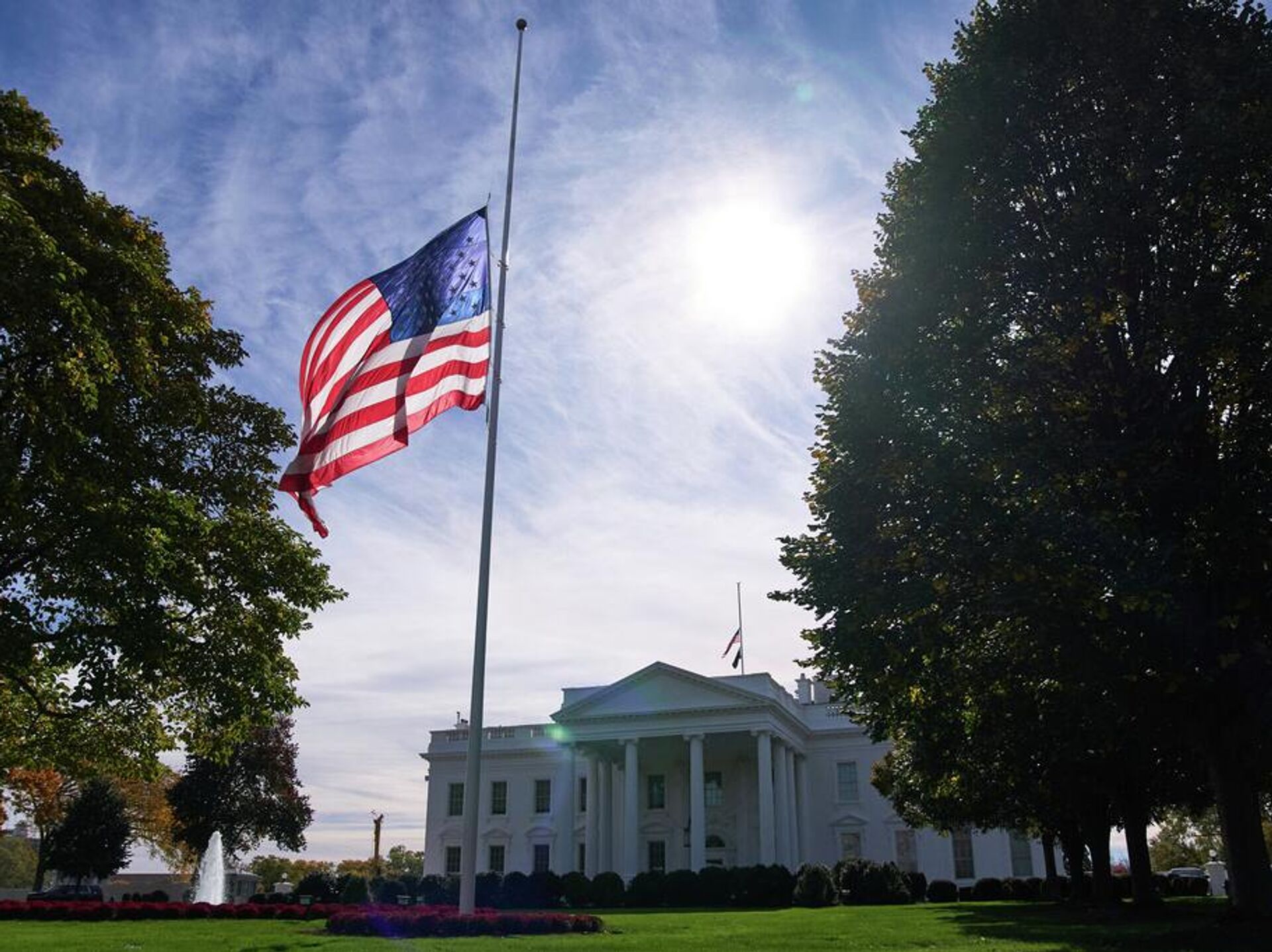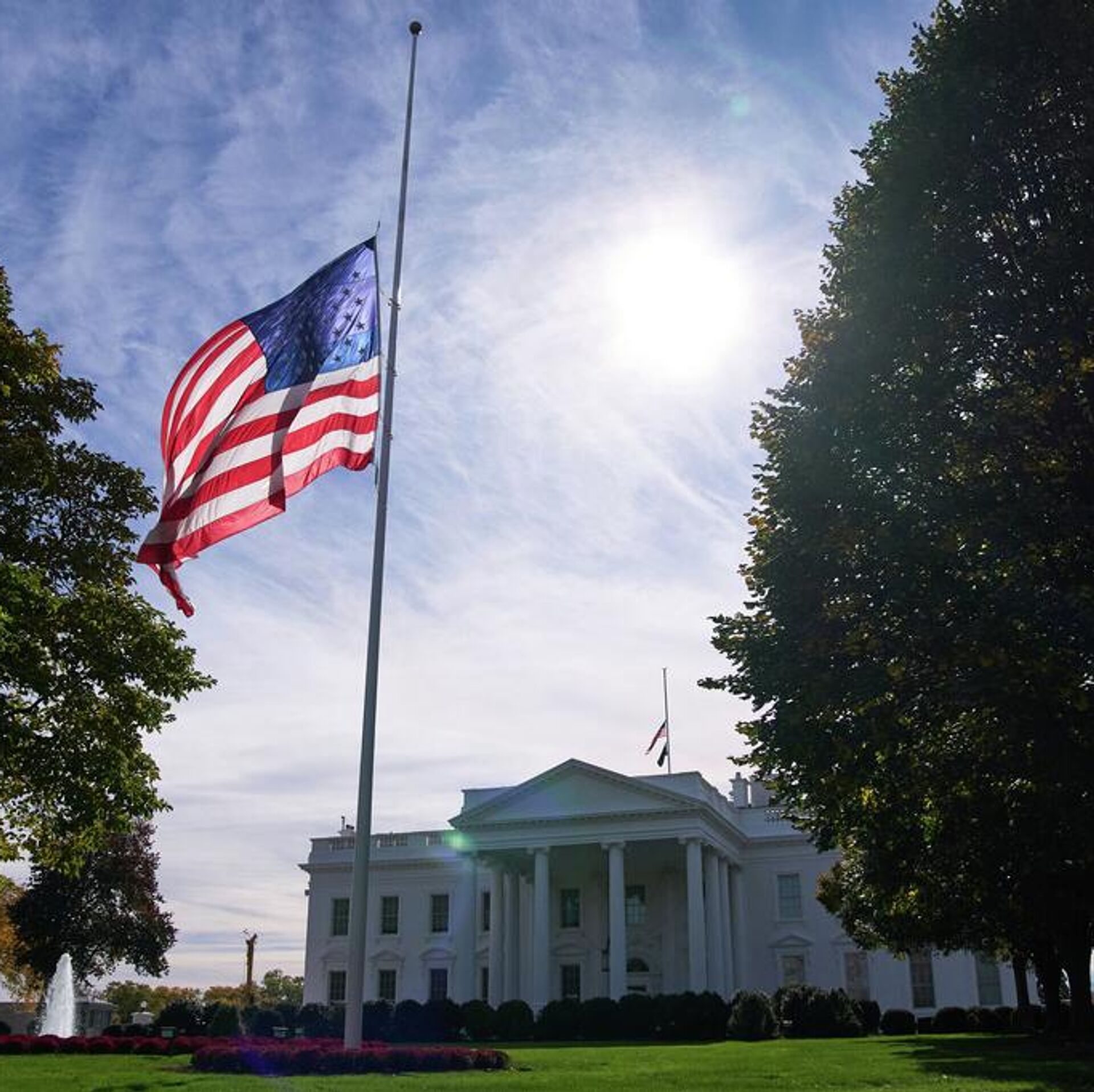 La bandera estadounidense ondea a media asta el 4 de noviembre de 2025 en la Casa Blanca en Washington, EEUU  - Sputnik Mundo, 1920, 03.04.2026