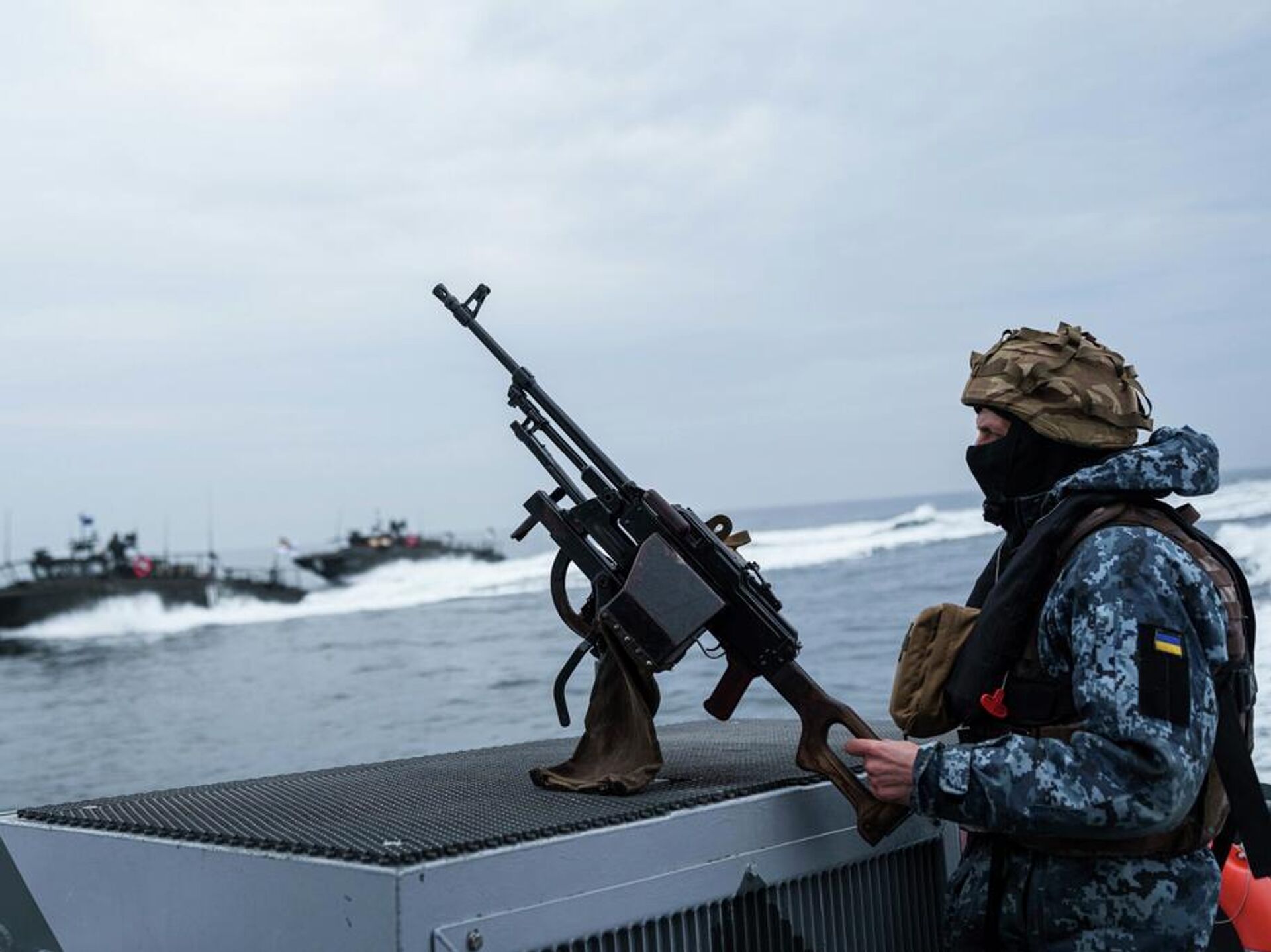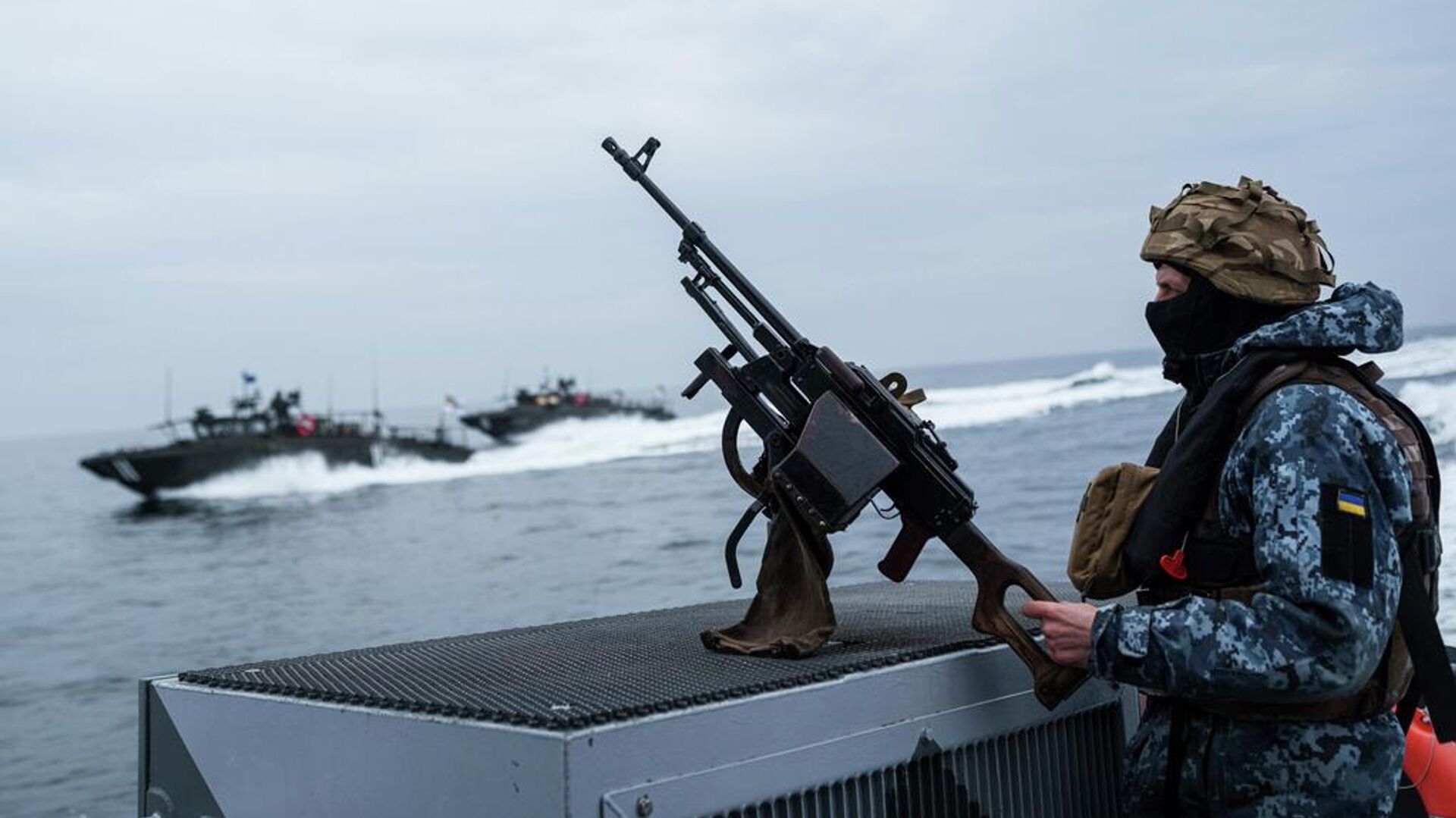 © AP Photo / Evgeniy MaloletkaUn militar ucraniano de las Fuerzas Navales Militares permanece de pie en una embarcación durante una patrulla sobre la costa del mar Negro en la región de Odesa, Ucrania, el 27 de marzo de 2025