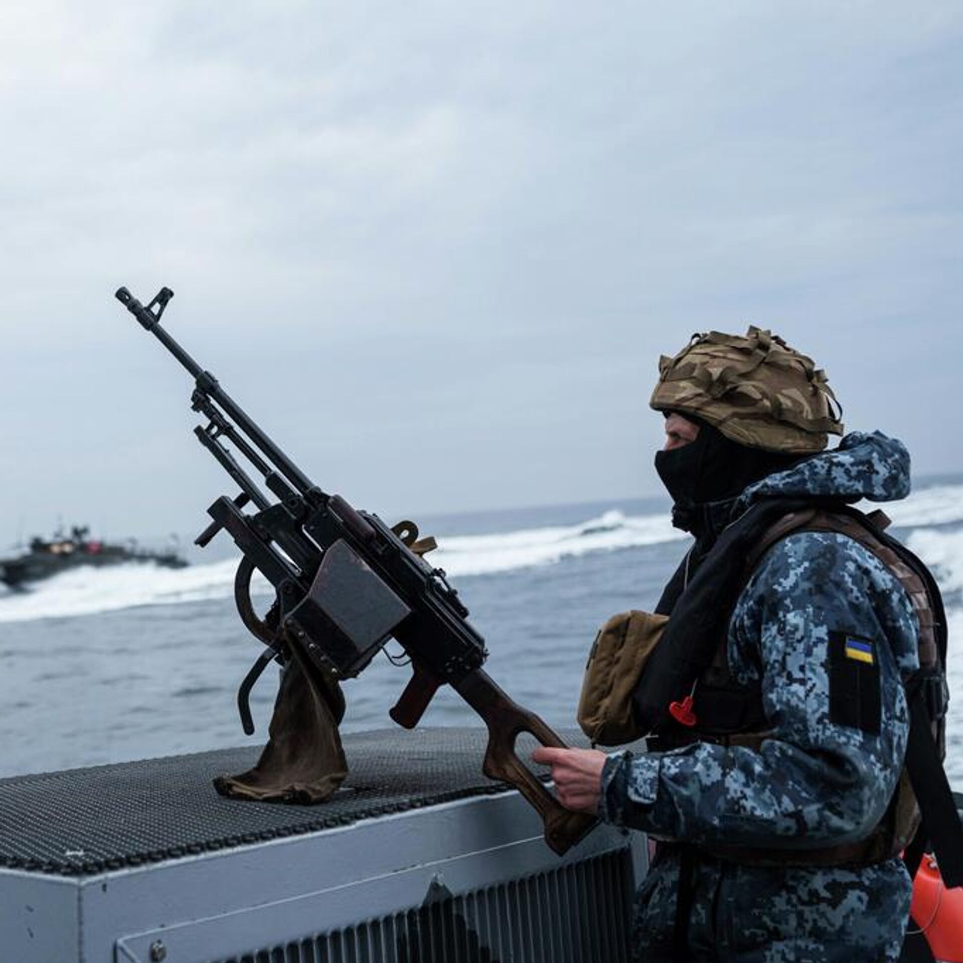 Un militar ucraniano de las Fuerzas Navales Militares permanece de pie en una embarcación durante una patrulla sobre la costa del mar Negro en la región de Odesa, Ucrania, el 27 de marzo de 2025  - Sputnik Mundo, 1920, 09.04.2026